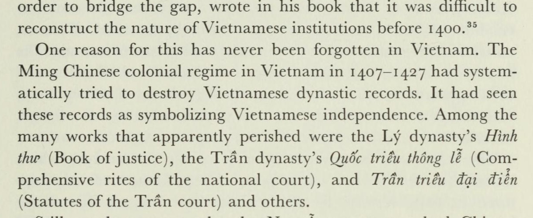 - Woodside, Alexander (1988). Vietnam and the Chinese model: a comparative study of Vietnamese and Chinese government in the first half of the nineteenth century. Harvard Univ Asia Center. pp. 125. ISBN 0-674-93721-X.