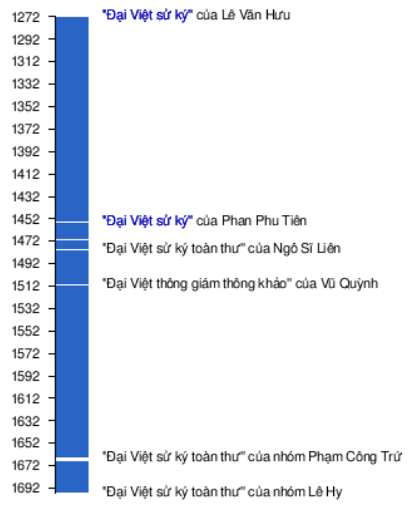 Adopting the period division in Vu Quynh’s Viet Giam Thong Khao (including “Ngoai Ky”, from Hong Bang Thi in 258 BC, to 12 Warlords (945-967); “Ban Ky” starting from Dinh Tien Hoang (968-980) to Le Trieu (Cao Hoang De - Le Loi, 1428).